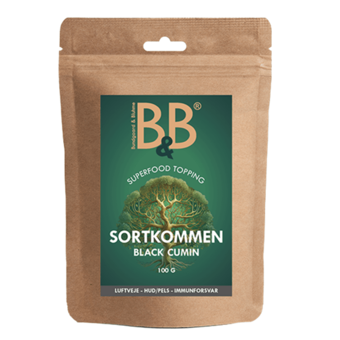 Sortkommen har i århundreder været kendt som en insektafskrækkende, styrkende og balancerende urt. I pulverform er det nemt at bruge som topping på hundens daglige foder – og samtidigt er det en naturlig kilde til værdifulde næringsstoffer.