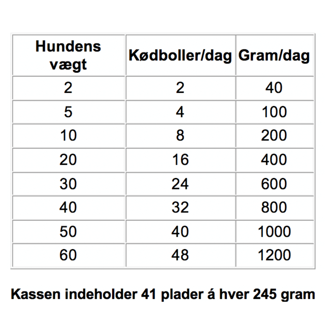 Fodringsvejledning - Husk den er kun vejledende. Det vigtigste er at kigge på sin hund og juster op og ned efter det.