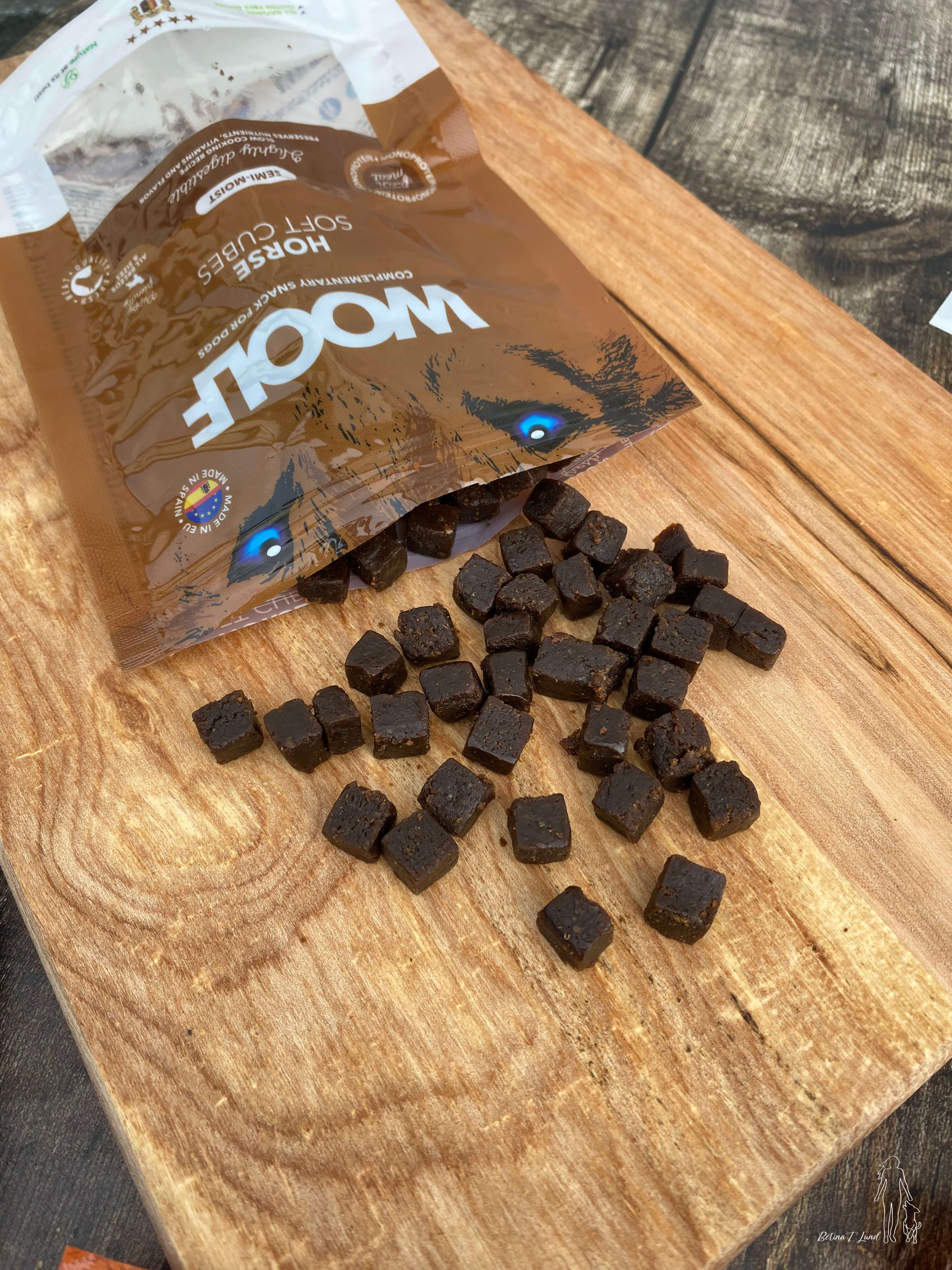 Woolf Soft Cubes hundegodbidder med 85% hest. De her godbidder har den lækreste konsistens - dejlig mosit og bløde uden at være for blød. Det betyder at de ikke er skrøbelige og ikke går i stykker, når de ligger i lommen eller godbidstasken.