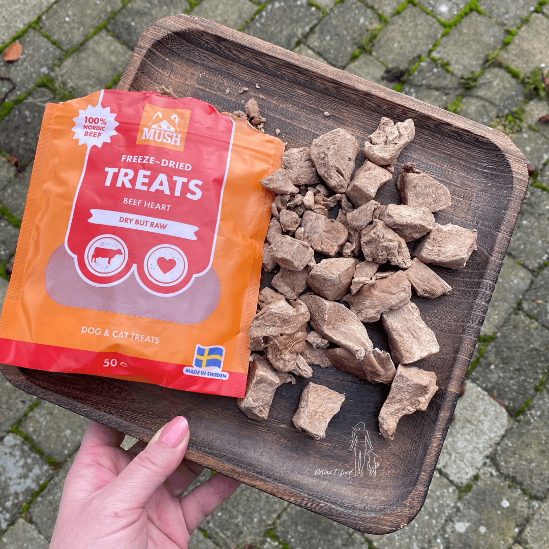 Mush frysetørrede oksehjerter til din hund. Godbidderne indeholder en rig dosis naturligt jern og protein. Hjertets kraftige smag tiltrækker din hund – gang på gang. En høj kvalitets godbid, som især er populær blandt barf fodret hunde.