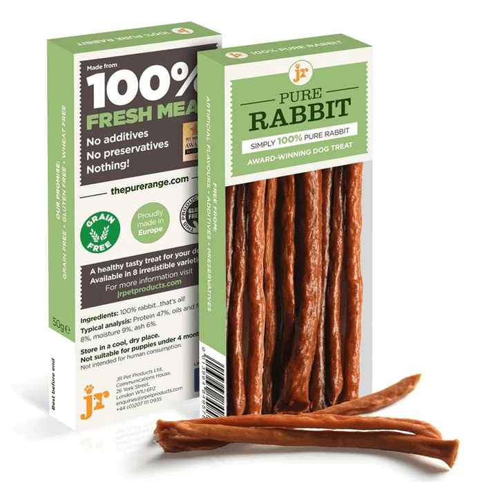 - JR Pure Sticks indeholder kun én ingrediens ... 100% førsteklasses kød