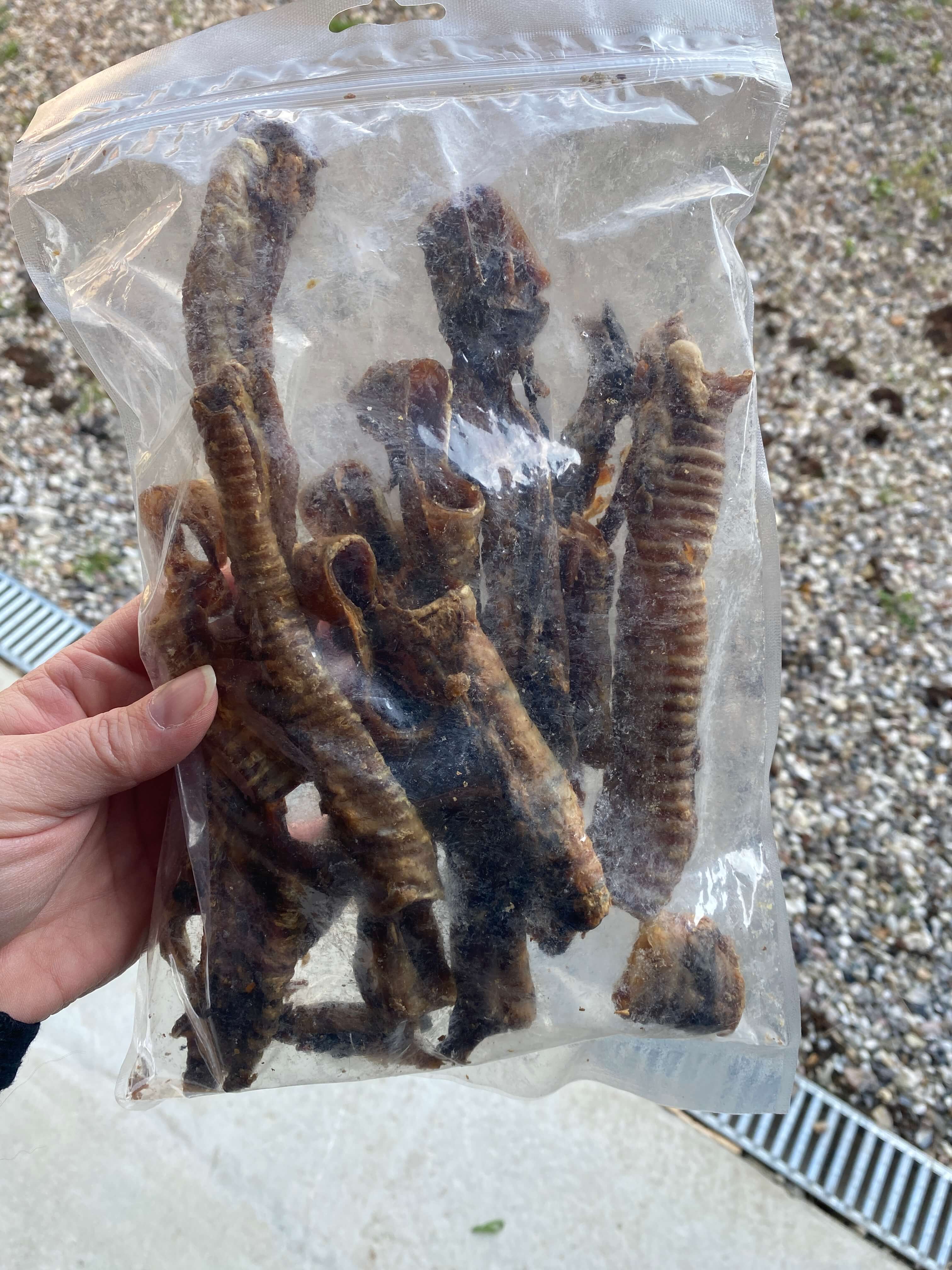 Lammeluftrørerne er 2. sortering, da der er en del mindre stykker i posen. Jeg ser gerne at lammeluftrørerne er hele, i stedet for mindre stykker. der er dog også en del hele i posen og derfor er de blot sat lidt ned.